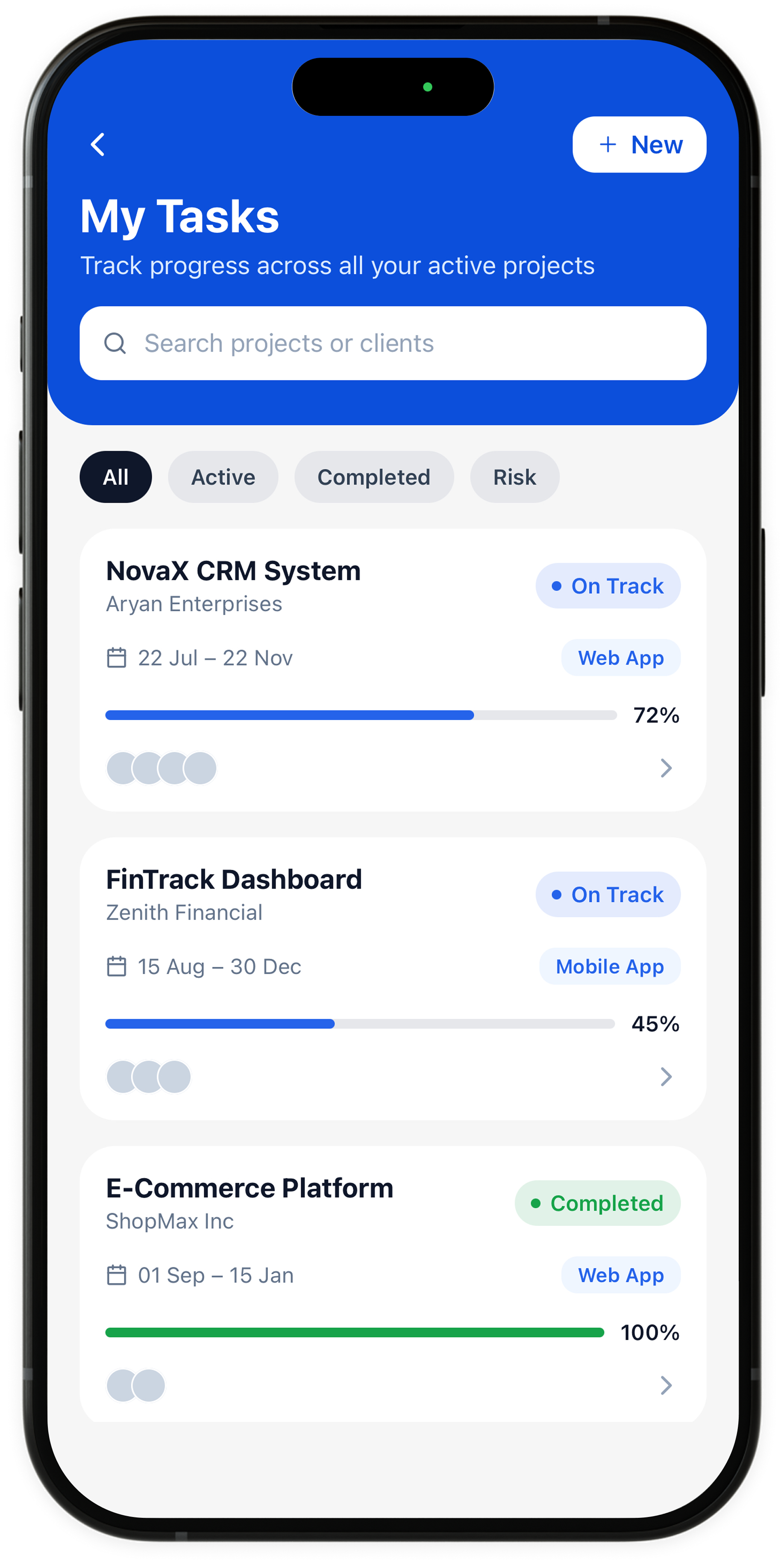 Organize multiple projects with timelines, responsibilities, and progress visibility.